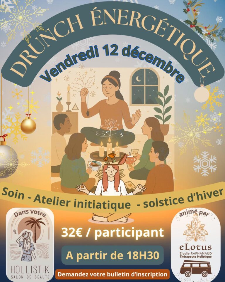 Alors que les jours raccourcissent et que l’hiver pointe le bout de son nez, le Salon Hollistik vous invite à une parenthèse douce et lumineuse : un drunch énergétique exceptionnel, le vendredi 12 décembre 2025, dès 18h30, dans votre salon Hollistik à Biscarrosse.